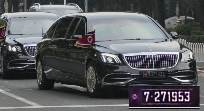 - 해당 차량은 김정은의 전용차, 특히 마이바흐 또는 아우루스 차량으로 알려집니다. ‘7·27 1953’ 번호판은 푸틴 대통령이 선물한 차량에도 부착된 동일한 패턴이었습니다. 따라서 해당 차량은 북한 전용차지만, 푸틴 대통령이 선물한 차량일 가능성이 있습니다. 푸틴이 선물한 아우루스 차량에도 동일한 번호판 스타일이 나타난 것으로 확인됩니다.