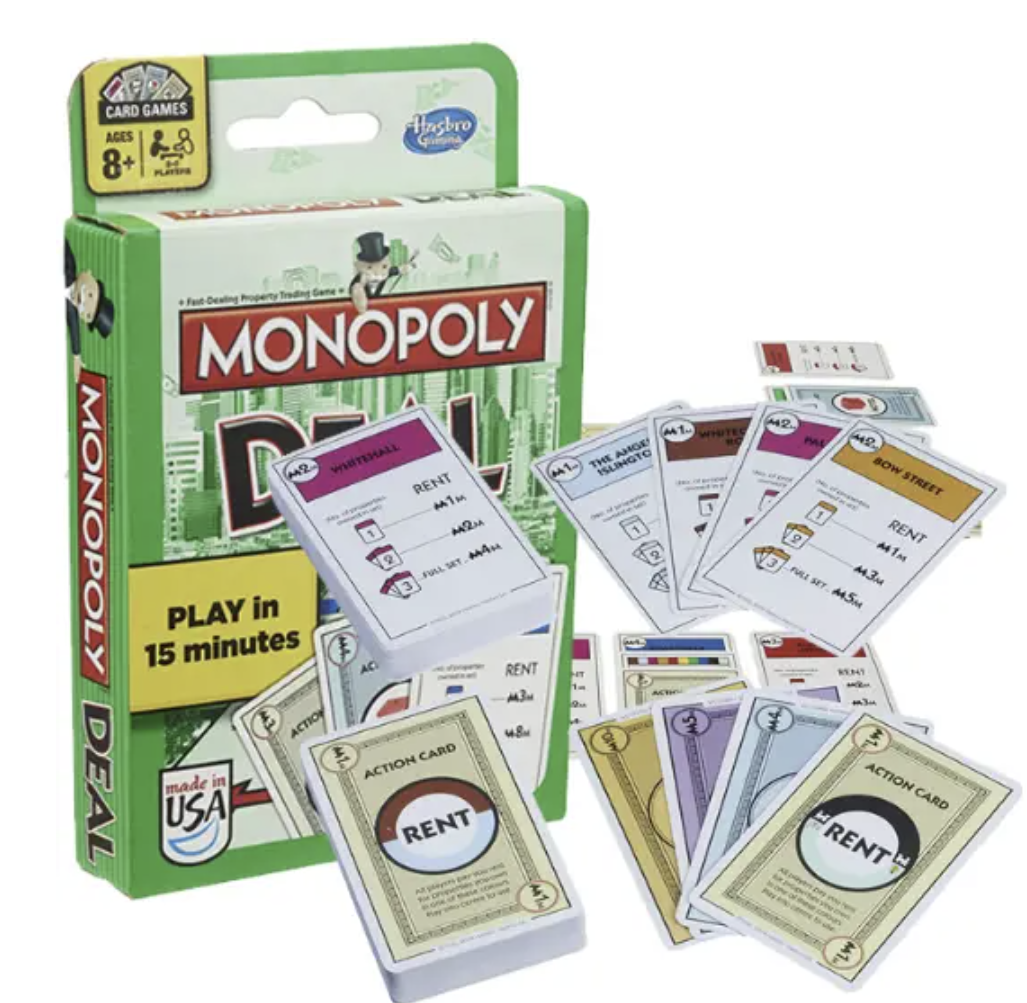 "모노폴리 딜(Monopoly Deal)" 카드게임은 클래식 보드게임 모노폴리를 기반으로 한 빠른 카드게임입니다. 약 15~20분 정도 걸리는 간단하고 중독성 있는 파티게임으로, 친구나 가족끼리 즐기기에 좋습니다.